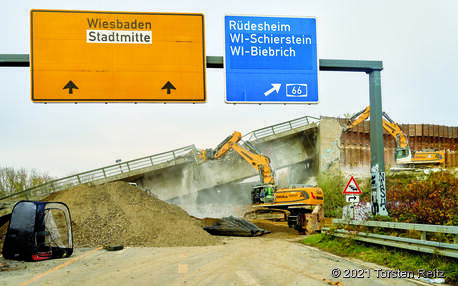 Oberbürgermeister Gert-Uwe Mende: „Ich freue mich, dass bei der Sprengung alles wie geplant geklappt hat und bedanke mich dafür bei allen Beteiligten. Seit der Havarie der Salzbachtalbrücke musste Wiesbaden ein immenses Aufkommen an zusätzlichen Verkehren verkraften. Die erfolgreiche Sprengung ist jedoch nur ein Zwischenschritt, wenn auch ein wichtiger. Nun muss die Priorität darauf gelegt werden, dass die Bahngleise und die Zufahrt zur A 671 möglichst schnell wieder nutzbar sind. So bekommen wir zu mindestens eine dringend notwendige Teilentlastung für den Verkehr in Wiesbaden. Anschließend hoffe ich, dass die neue Südbrücke Anfang 2023 fertig gestellt wird. Weitere Verzögerungen wären für die Landeshauptstadt schwer verkraftbar. Das Projekt muss mit höchstem Nachdruck und Priorität vorangetrieben werden. Wiesbaden muss schnellst möglich wieder von den Umleitungsverkehren entlastet werden.“
