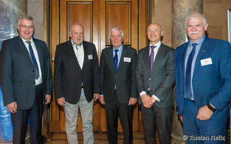 Dipl.-Ing. Ingolf Kluge (Präsident der Ingenieurkammer Hessen), Dipl.-Ing. Jürgen Wittig, ÖbVI (Vizepräsident der Ingenieurkammer Hessen), Univ.-Prof. Dr.-Ing. Dr.-Ing. E.h. Udo F. Meißner, Staatssekretär Dr. Philipp Nimmermann, Dipl.-Ing. Jochen Ludewig (Vorsitzender des Kuratoriums Hessischer Ingenieurvereinigungen) (v.l.)